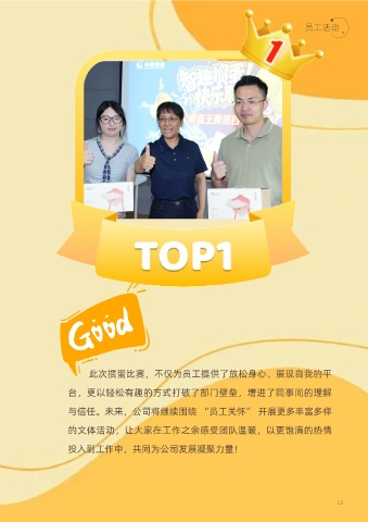 员工活动 此次掼蛋比赛,不仅为员工提供了放松身心、展现自我的平 台,更以轻松有趣的方式打破了部门壁垒,增进了同事间的理解 与信任。未来,公司将继续围绕 “员工关怀” 开展更多丰富多样 的文体活动,让大家在工作之余感受团队温暖,以更饱满的热情 投入到工作中,共同为公司发展凝聚力量! 12