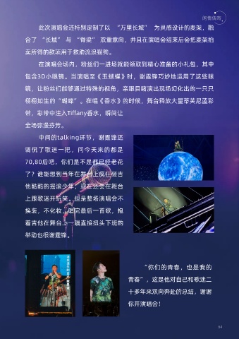 栩栩如生的“蝴蝶”。在唱《香水》的时候,舞台释放大量蒂芙尼蓝彩