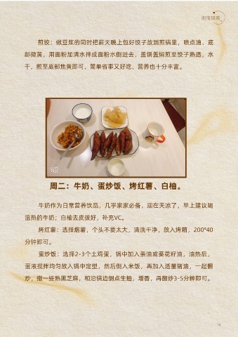 周二:牛奶、蛋炒饭、烤红薯、白柚。