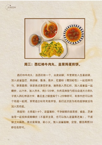 周三:西红柿牛肉丸、韭菜鸡蛋煎饼。