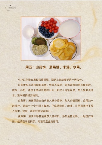 山药饼:米粥里捞出山药放入碗中捣碎,加入少量面粉、食用油一